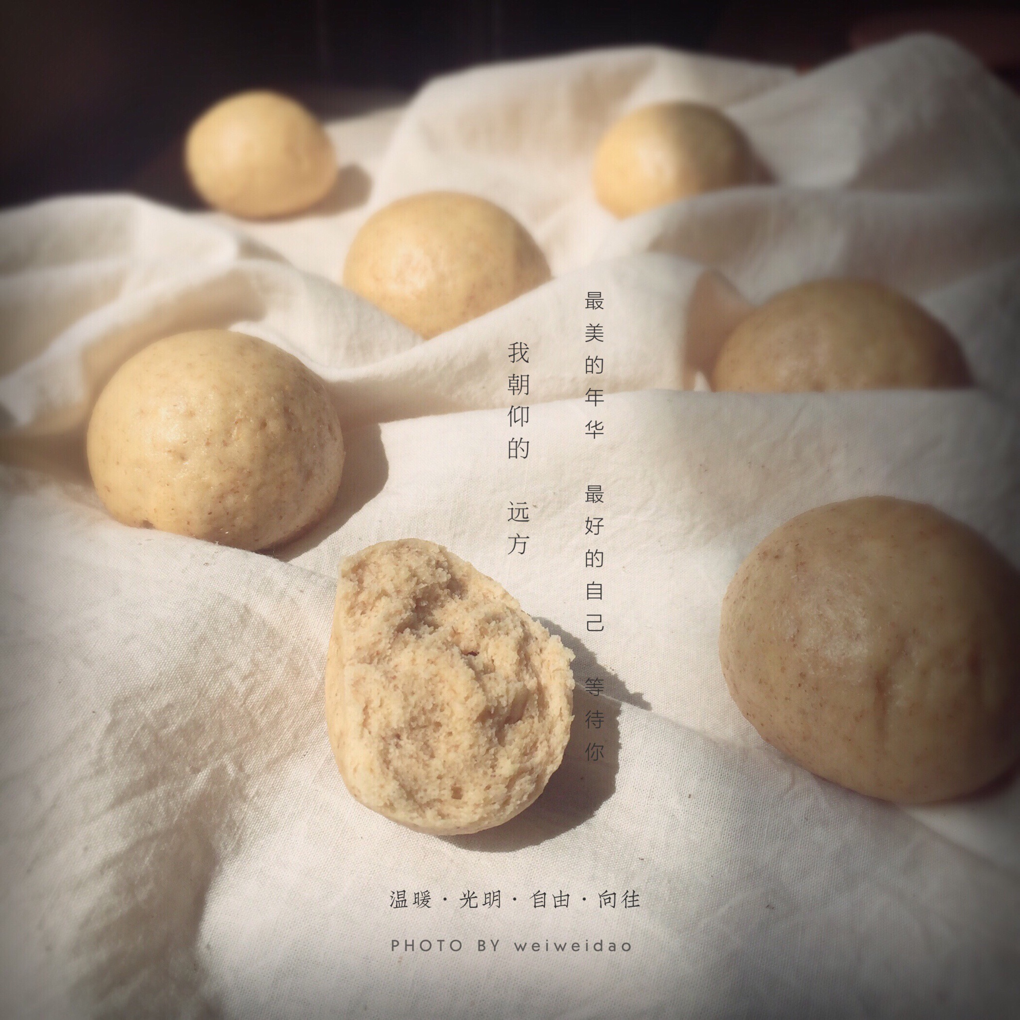 有段时间一直看美食照片 那些大神们整出的照片(☆_☆) 酷毙了 看着超好吃 于是二话不说在妈妈不同意情况下 买了烤箱 买了磨具 买了材料 从蔓越莓曲奇 戚风开始入手 疯狂爱上了烘焙 一发不可收拾 ^_^ 掉进了这个万丈深渊的“坑” 不过这是甜蜜坑 现在我很庆幸自己能掉进这个坑里 很享受这一切 o(^▽^)o 烘焙让我更加热爱生活 对未来无限憧憬 享受生活 因此也认识了很多朋友 感谢烘焙带给我的一切 照片都是纯手机拍摄 微信号:bueryeding666 公众号:薇薇道 欢迎沟通交流