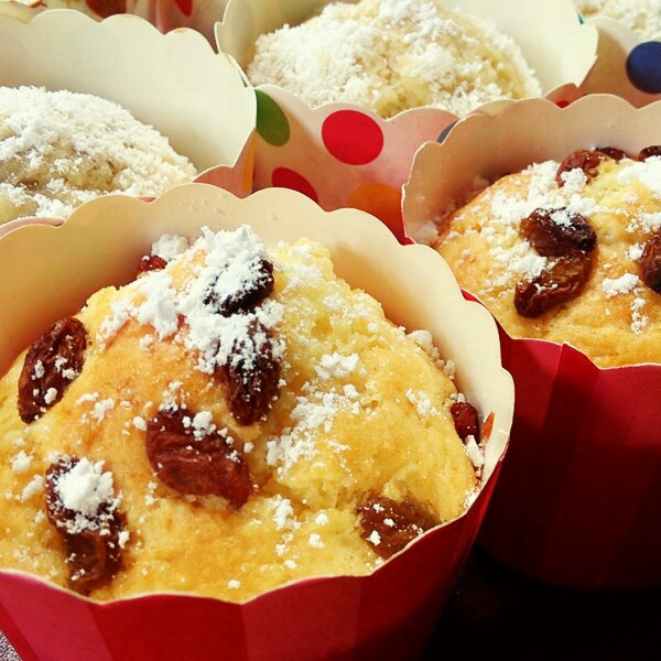 又做了几个核桃椰蓉的 葡萄干上的撒了点糖粉 卖相还不错噢 给小伙伴尝了都说挺好的