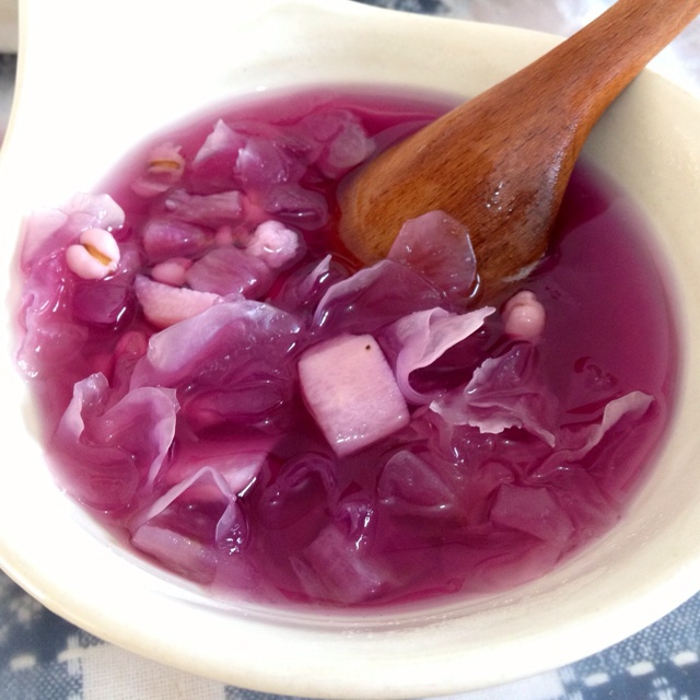 胡小花244 做过 紫薯银耳羹 先表达一下惊艳!!!真如菜谱所说,这个汤羹太惊艳,有木有啊有木有?"妖娆剔透"是作者的评价,冲着这才去做的!特地买了紫薯,翻看菜谱的时候发现了这种做法,还自配了山药和薏米。全都染成了神秘的紫色!太棒了……口感也好,若把它放到冰箱里,在夏天…发挥想象吧!!! 2013-09-13
