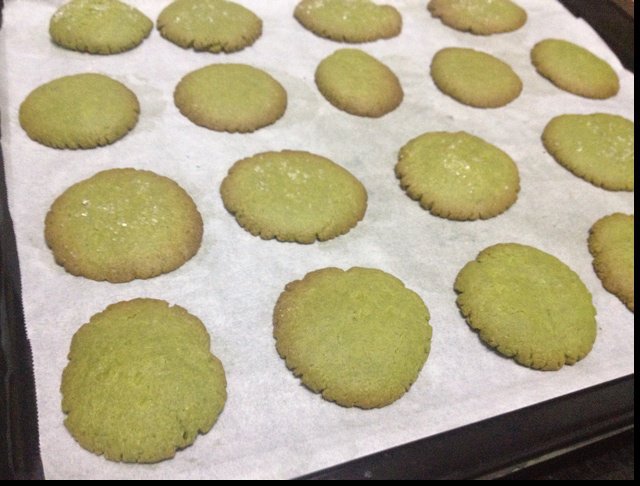 joyce 做过 心形抹茶饼干 用的土鸡蛋比一般鸡蛋要小一些,做到后面发现面团非常干很难成团不得已加入一些分出的蛋清,但还是不够好,成品是分成一个个小球拿手压的。。因为边缘薄烤到13分钟就出炉了,结果里面没到位 2014-01-20