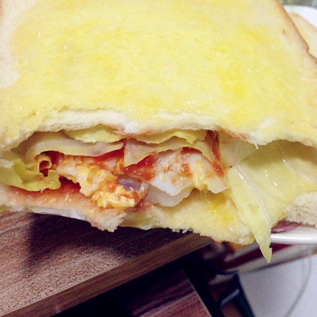 跪下唱征服 做过 煎蛋 #晚餐•Feb 12, 2014#第一次煎蛋都碎掉啦,于是机智地夹进面包里,诶然后吐司表面抹黄油和鸡蛋液混合物放烤箱烤五分钟就拿出来啦( ⁼̴̶̤̀ω⁼̴̶̤́ ) 2014-02-12