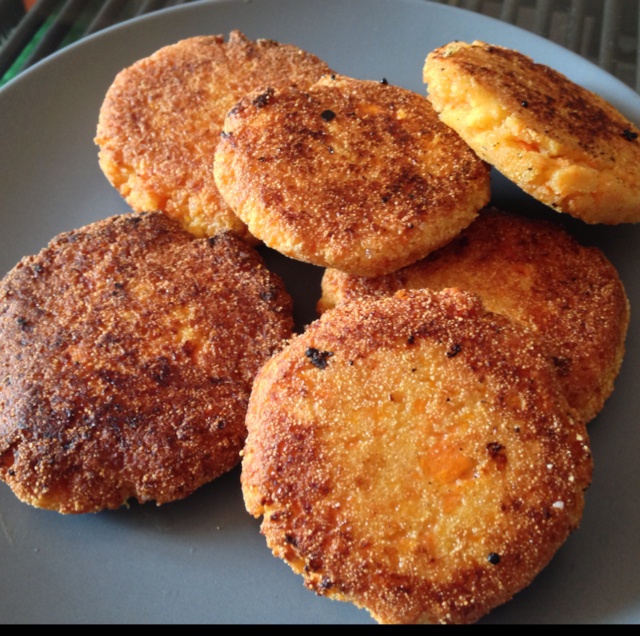 用早上榨果汁剩下的胡萝卜泥,加了鸡蛋、牛奶、玉米粉、糖,随手煎了吃吃!