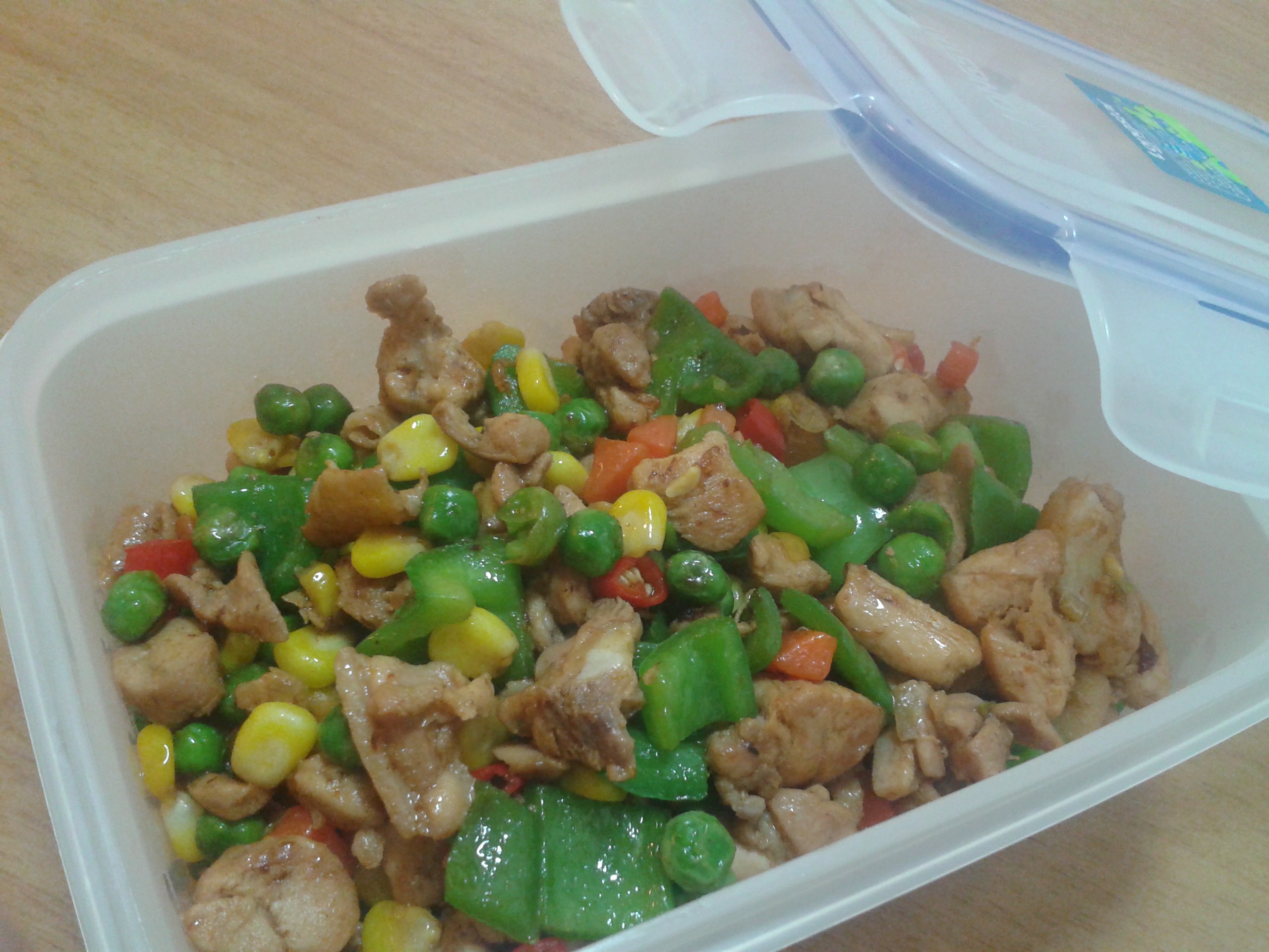 豌豆玉米胡萝卜甜椒炒鸡丁