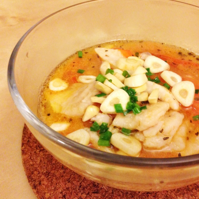 只有一个番茄了,下回可以多放些番茄丁。Swai鱼片浆制过后口感刚好~