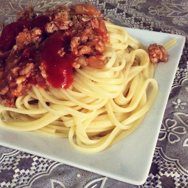 美味的肉酱意面 洋葱对身体好 但是味道太大 搭配了意面 就能接受!来一小碟 ❤️