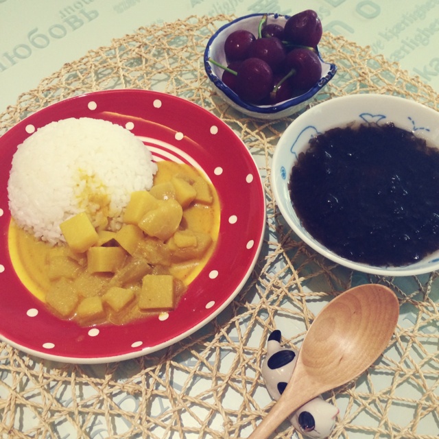 咖喱土豆饭+紫菜汤+樱桃