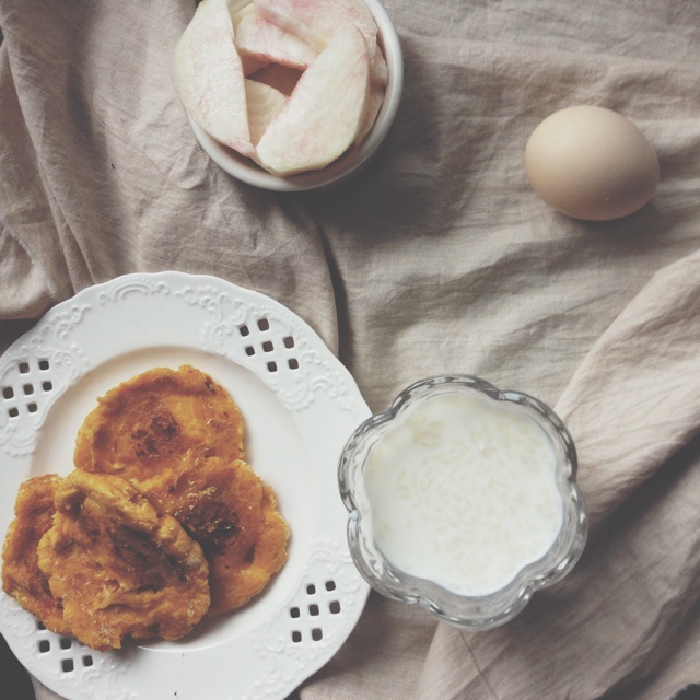 好好吃早餐,减脂Day14又是Brunch了,南瓜饼,桃子加盐,酒酿牛奶