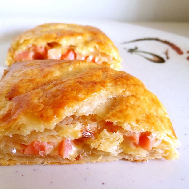 做成了派的形状。可能不太适应酥皮做咸味的东西。。。还是做甜品好吧哈哈。不过方子是很简单的说。