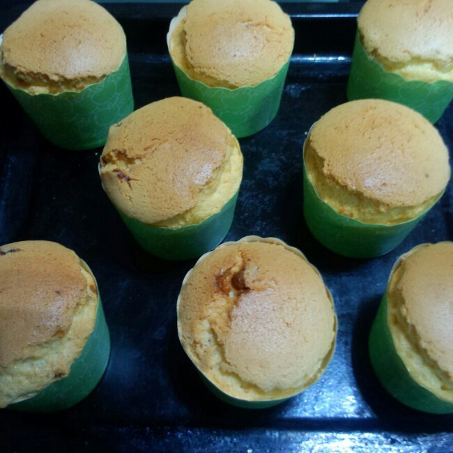 嫣然听雨 做过 蛋香十足の海绵杯子蛋糕,伴手礼好选择。 方子不错,但面粉筛入拌好的蛋白糊,消泡厉害,还有就是烤的时间25分钟不够,许是烤箱不同,我足足多用了十分钟,仍未上色,又扭到180度,结果烤干了点。 2014-11-01