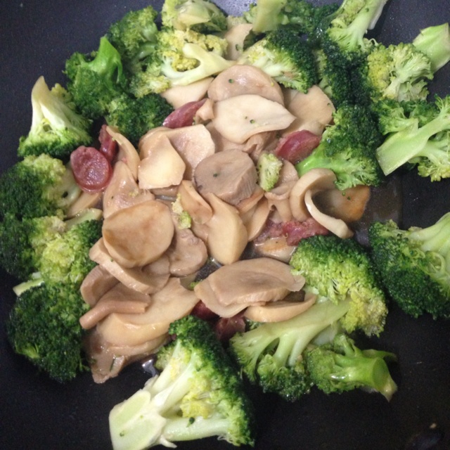 杏鲍菇+ 西兰花。哈哈被老爸夸了有营养