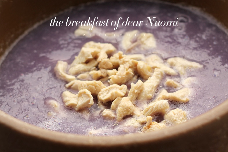 糯米DD的早餐:鸡肉肉+紫甘蓝西芹泥 今天的菜泥色好美,天气又好,欧夜~~~~