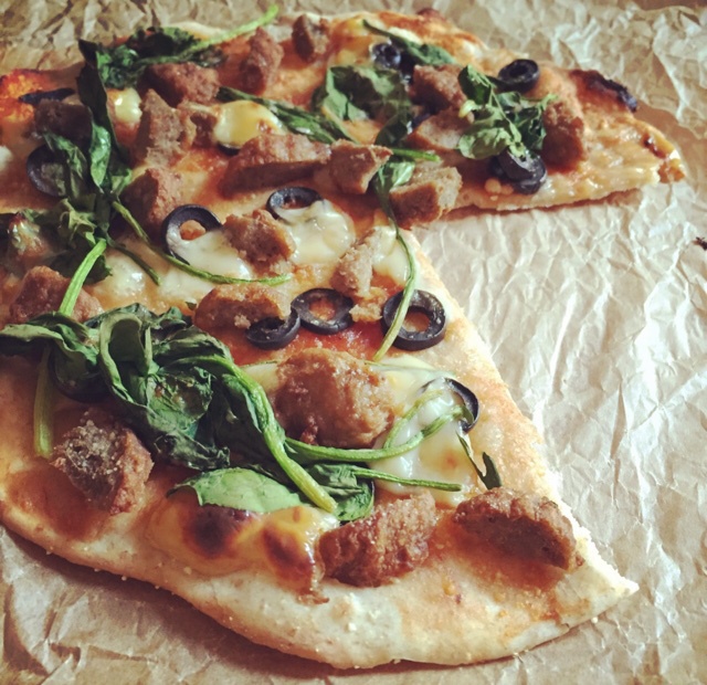 明天出门,家里的材料拢了拢,烤了个披萨。