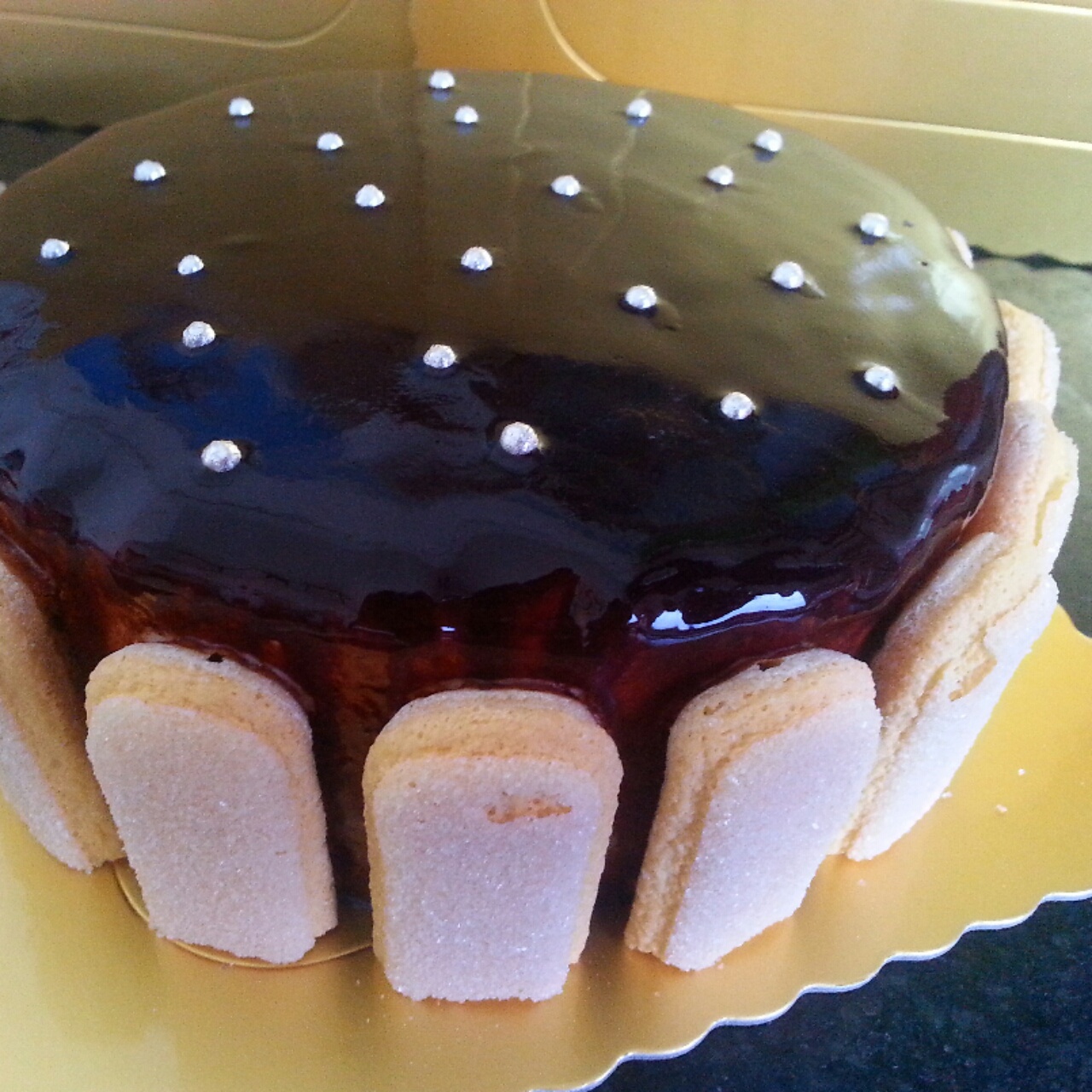 第二次做淋面、比第一次做的好太多、抹面也平滑了很多!提拉米苏的手指饼很好吃。