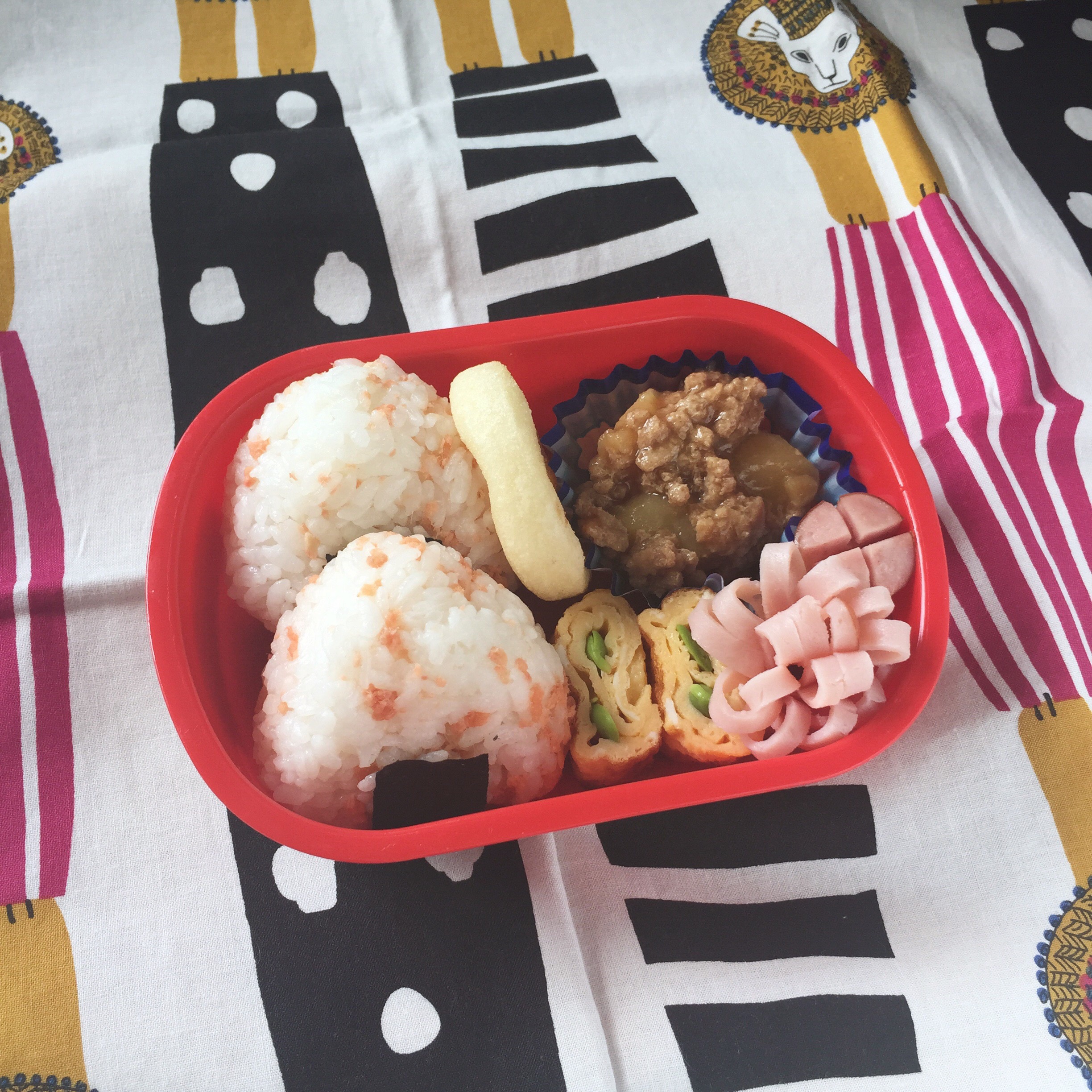 幼儿园便当。 闹钟没响起晚了(°_°)じゃがいものそぼろ煮。