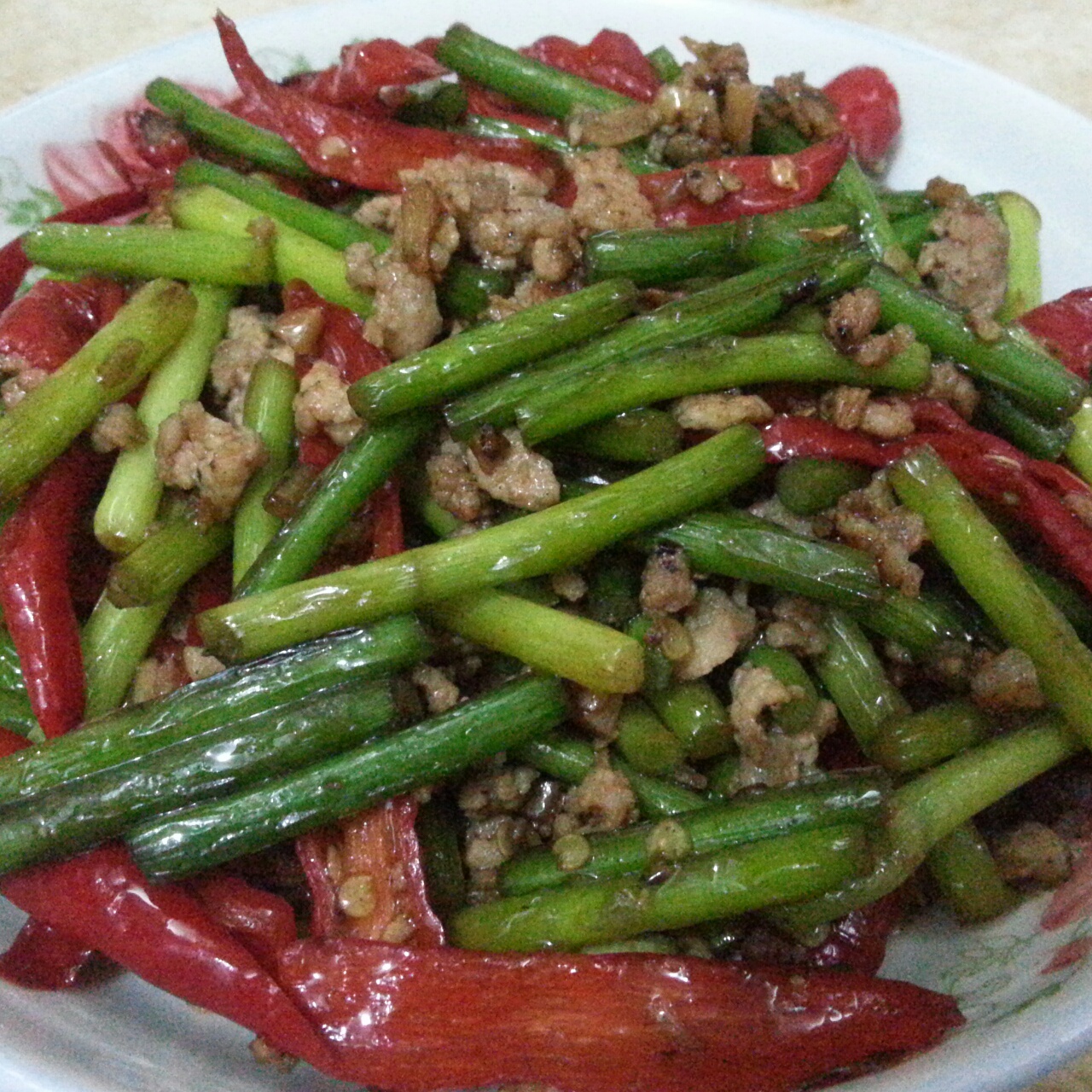 蒜苗炒肉丝
