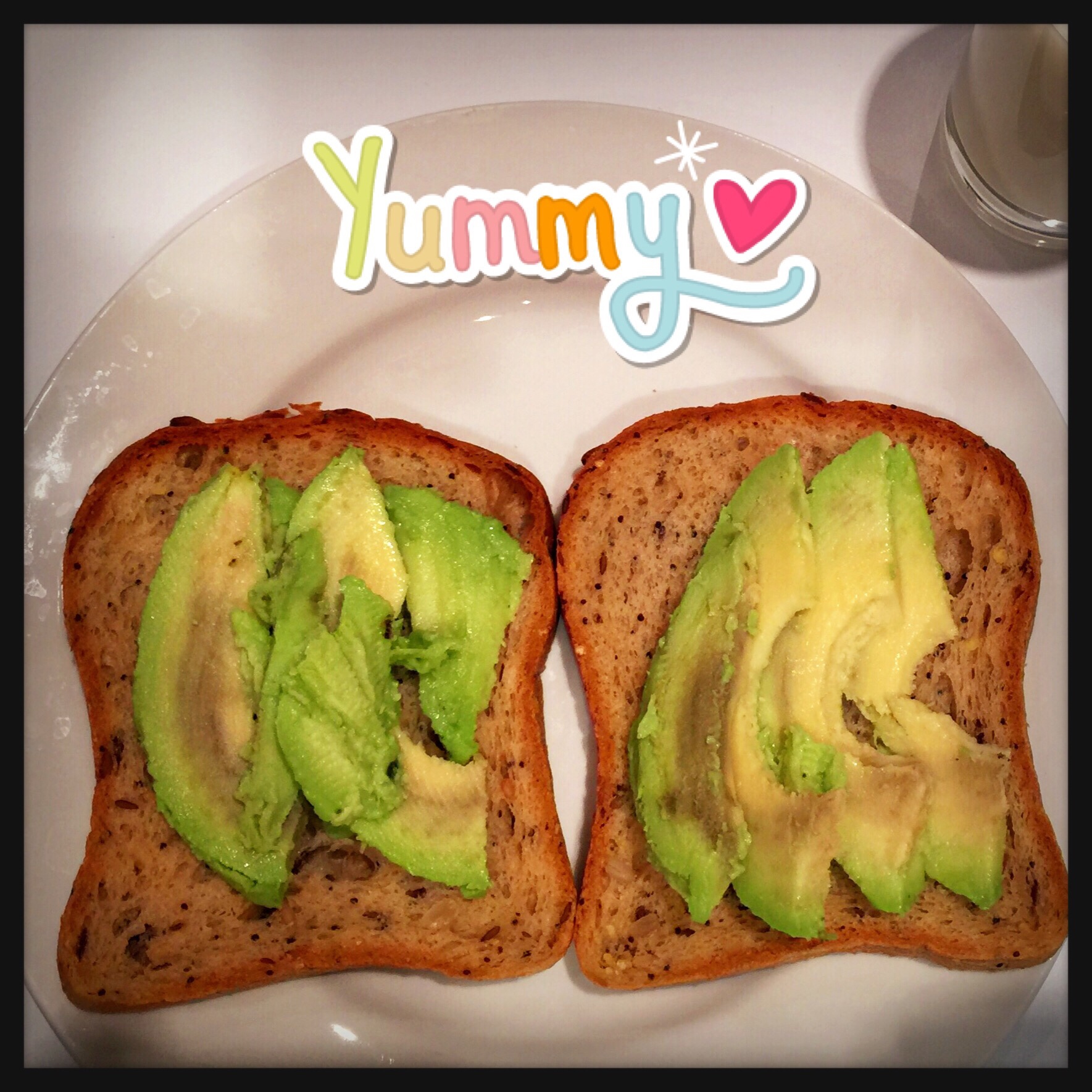 Typical breakfast: bread+avocado+milk