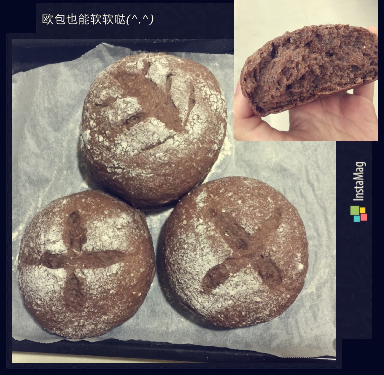 h_heng 做过 全麦巧克力豆软欧 好神奇,就因为多了十克糖和油就让平时石头搬的欧包成了超级软妹子 ⊙▽⊙,比甜面包还软耶,盐应该在多点,巧克力和盐是绝配!组织也有水膜,后筋度,八错! #晚餐•2015年10月4日# 2015-10-04