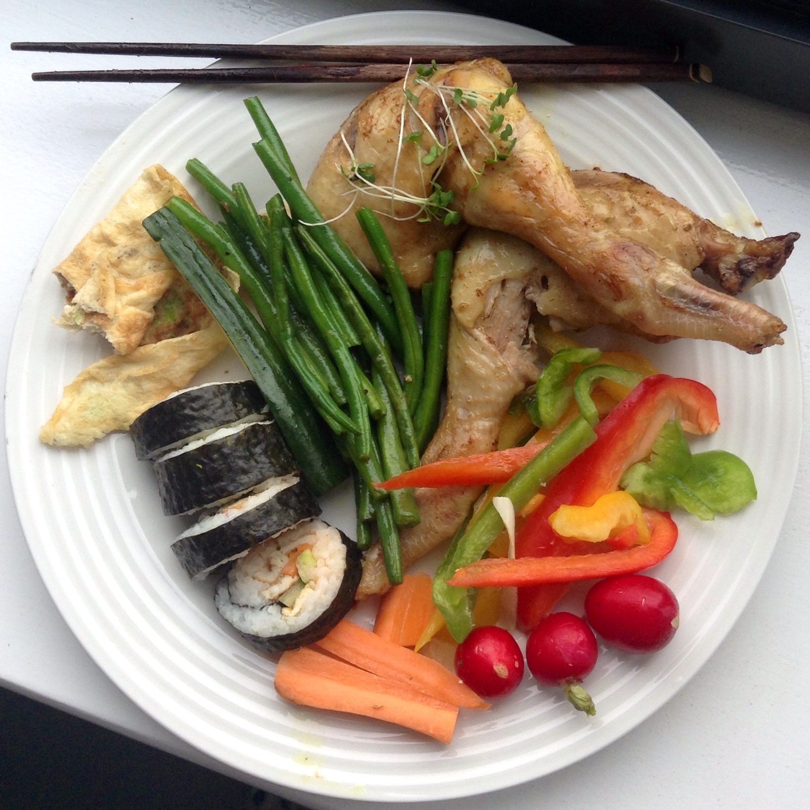 烤俩鸡腿吃 加早上剩饭