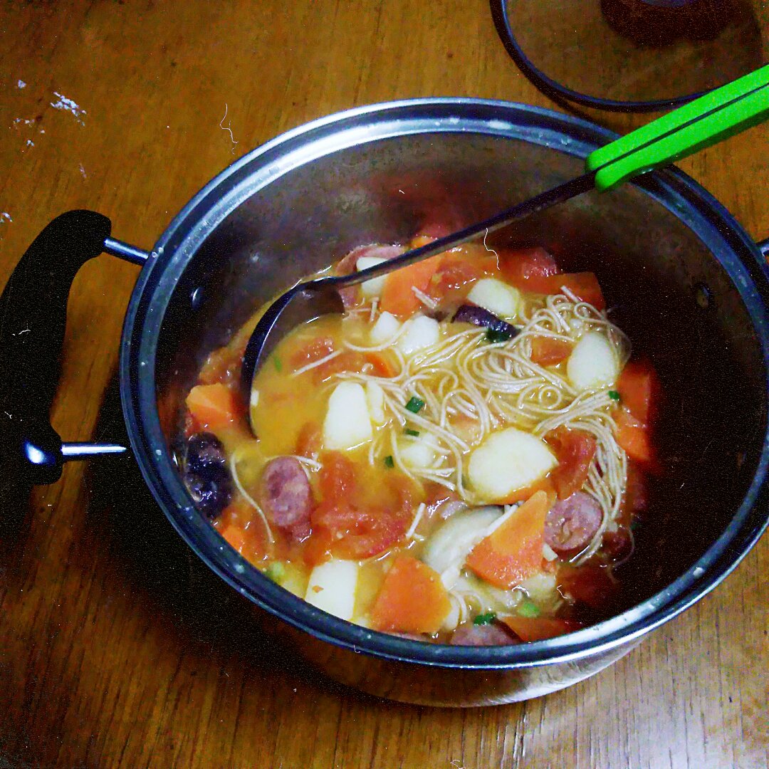 西红柿土豆香肠浓汤煮面