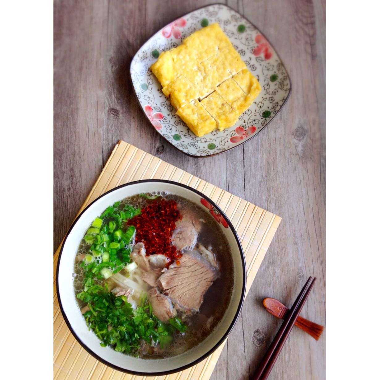 昨晚特地煮了牛肉汤,只为今早一碗热腾腾的牛肉面…