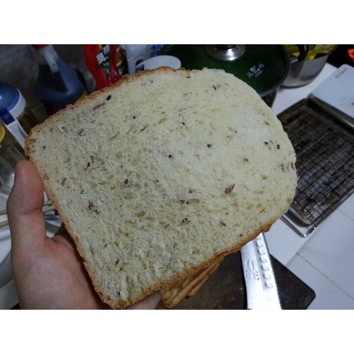 #早餐•2015年11月21日##新败面包机#第八只,掀起你的头盖骨。。。。哈哈哈顶层非常绵软,皱皱的,好棒哒,成品540克,放哪凉了1个小时,变成520克了,哈哈哈跑了20克水份。没有撕,切片了,话说真不好切昂,顶层非常的软,柔软度,口感,味道,真跟面包房差不多了,特别软,特别特别软!估计我的黄油不够好,或者加的少,换黄油还能再提升,ps仟吉5片白吐司就10块钱啊!真黑!