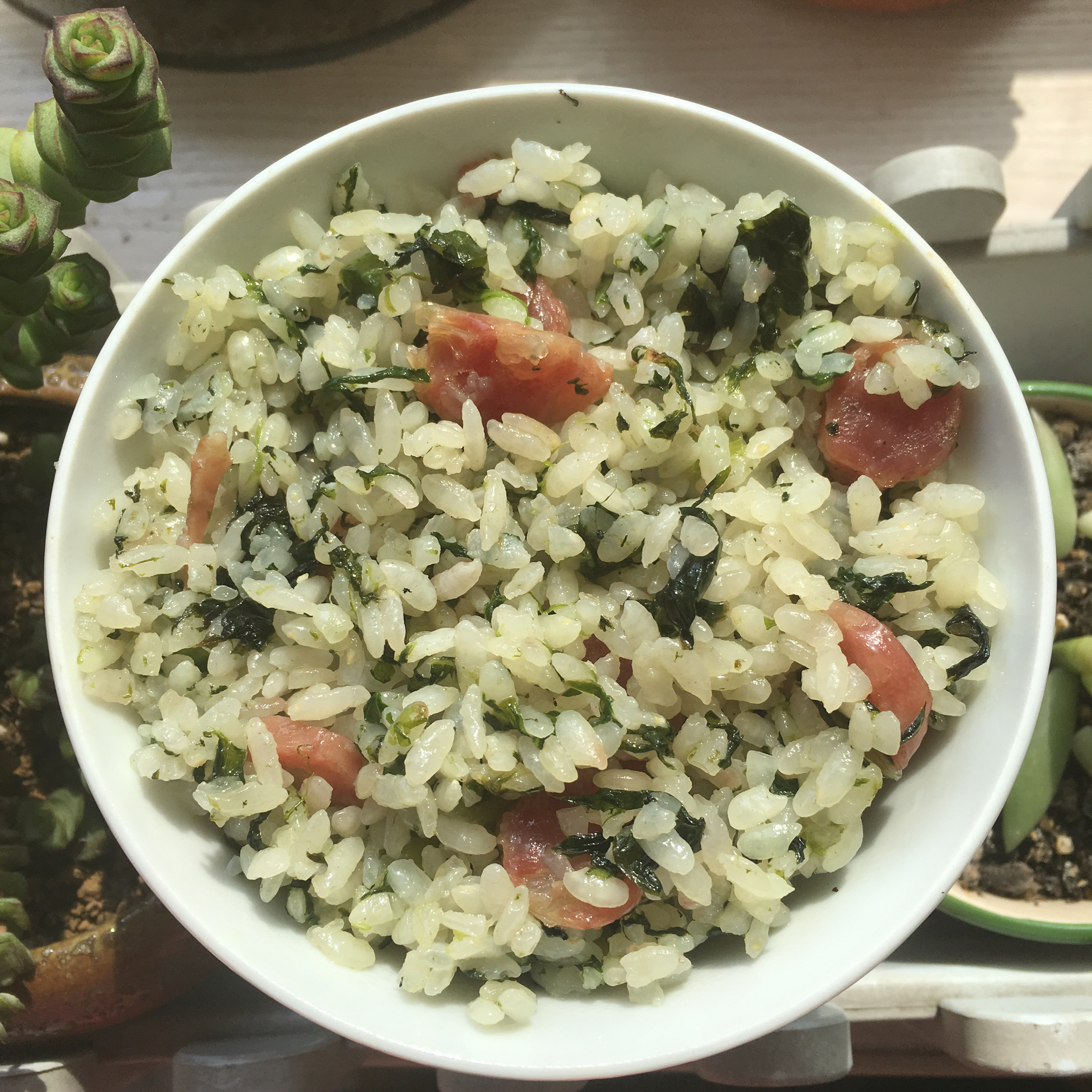 香肠莴笋叶菜饭