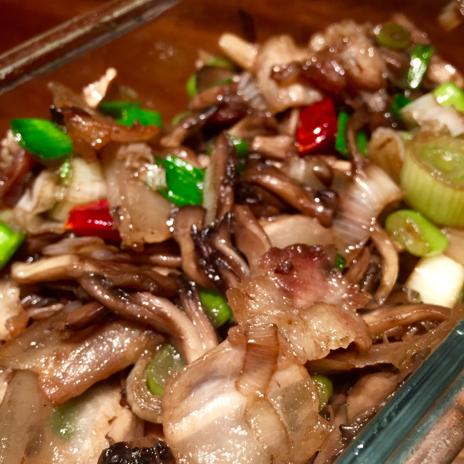 灰树花炒五花肉片,好香