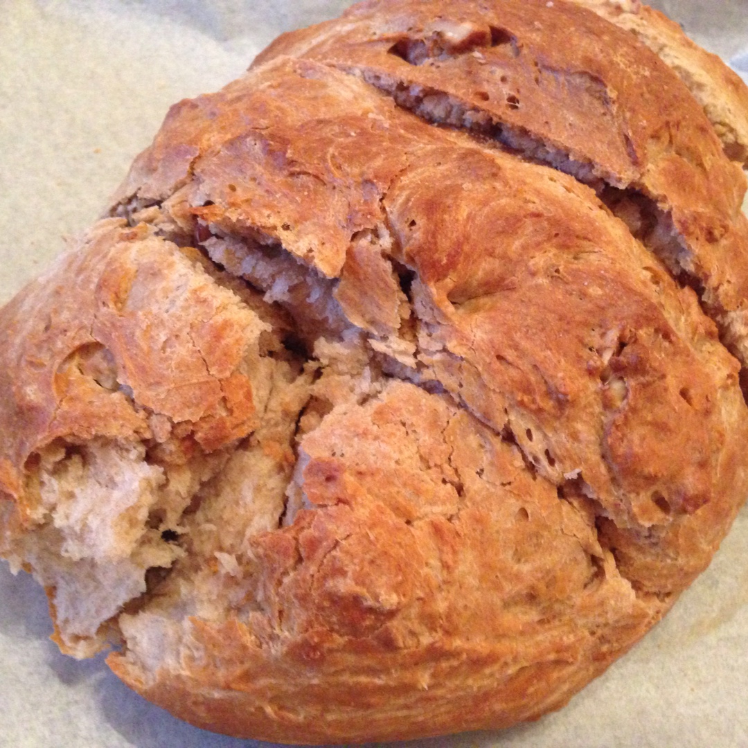 加了核桃按配方的量做的,免去了整形发酵好直接放烤盘上了,很香,外壳脆脆的,不错。