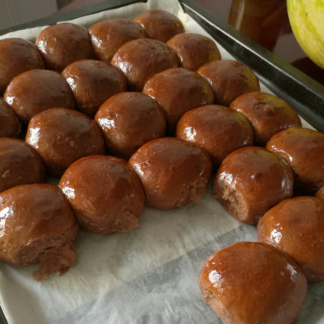 停不下来了,一大波黑眼豆豆来袭,添加了15克可可粉,味道赞赞哒。图二昨晚第二波添加了60克淡奶油,口感比原方更柔软。