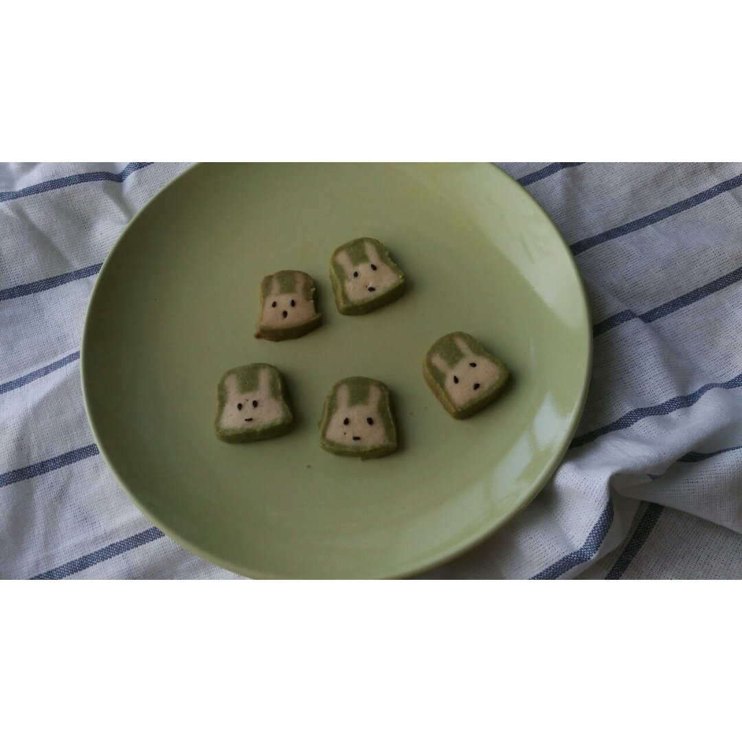 _Tiongerr 做过 抹茶兔兔曲奇(比熊猫简单!超详细实物图+超良心手绘图) #晚餐•2016年5月1日##吃饼饼##2016好光景##生活志#粗炉了!香酥!60g糖,感觉是淡淡的甜味,喜欢。 2016-05-01