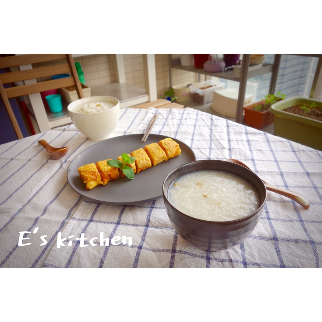 是日早餐:绿豆薏米粥+胡萝卜鸡蛋卷
