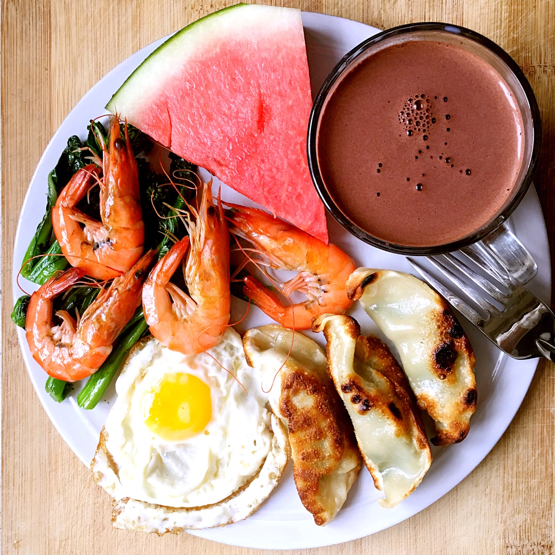 #Today's breakfast# 煎饺与虾~