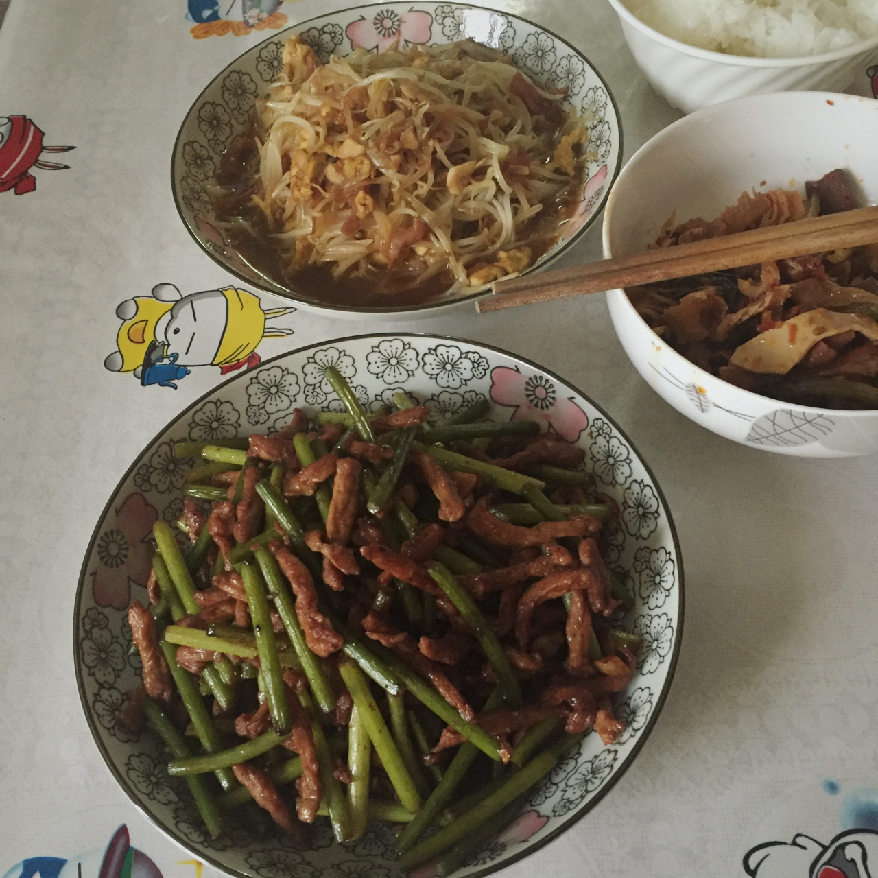 蒜苔肉丝,鸡蛋豆芽菜
