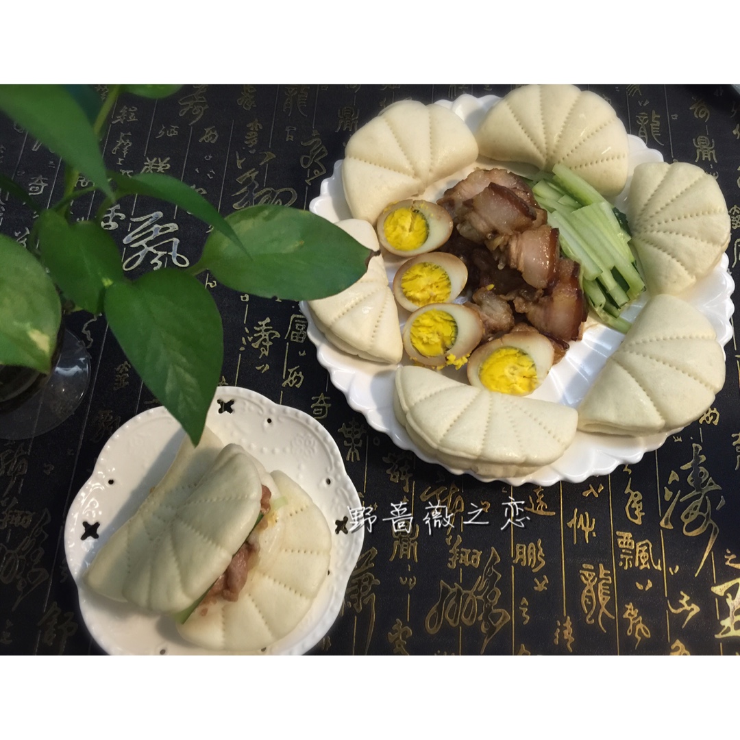 荷叶夹子,中式包也可以很美艳😃,形状照方子,面按自已平时做蒸包的配方!