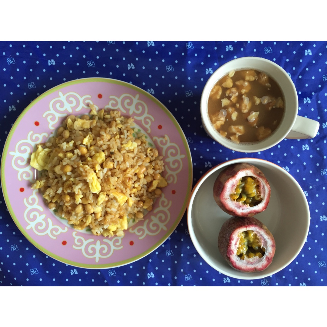 早😀昨晚的剩饭做成鸡蛋酱油炒饭,冲杯核桃红糖麦片,超快手早餐😂