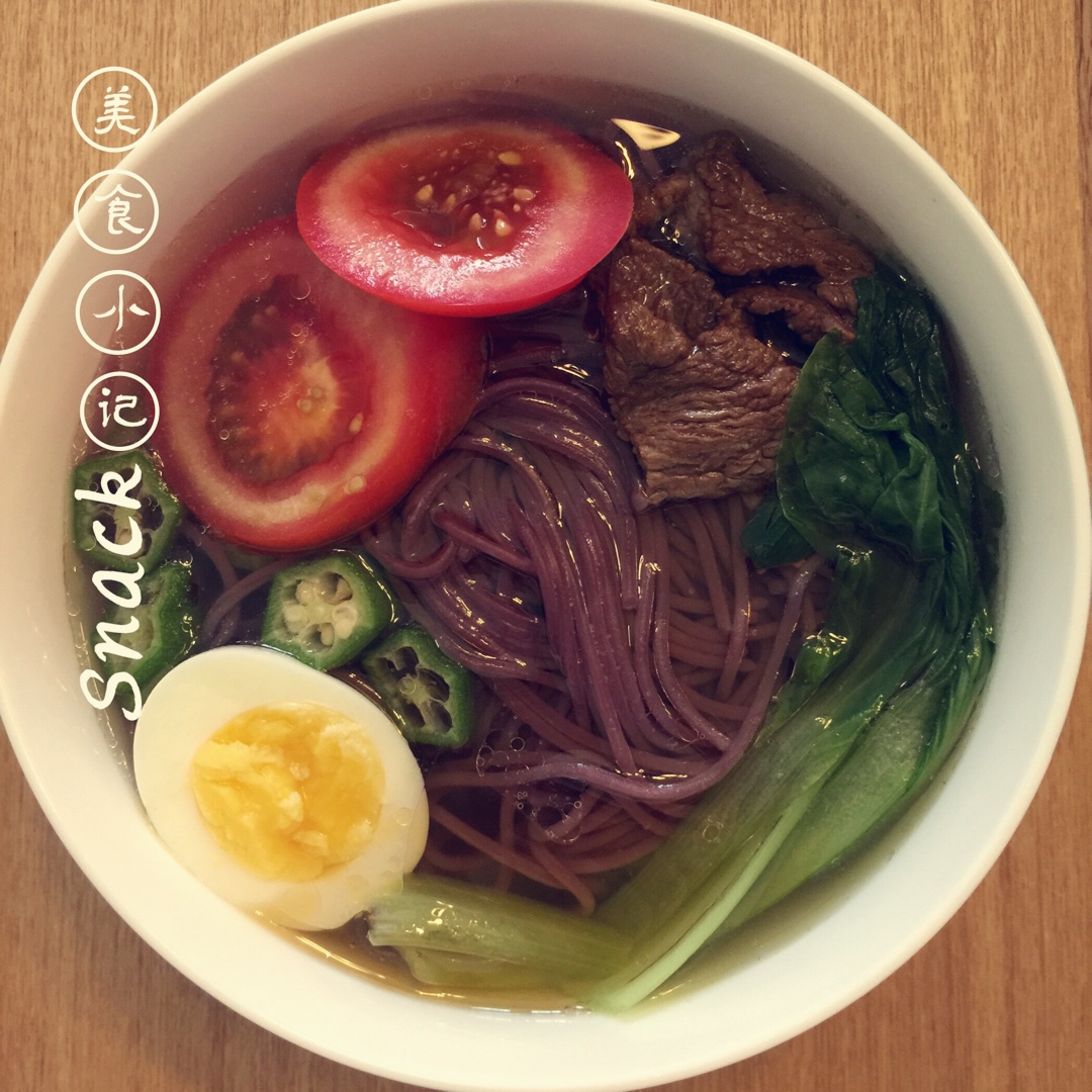 【五彩鸡汤紫薯面】真的很鲜,加了点爆炒牛肉片,空点紫薯面也自己做就更赞了。