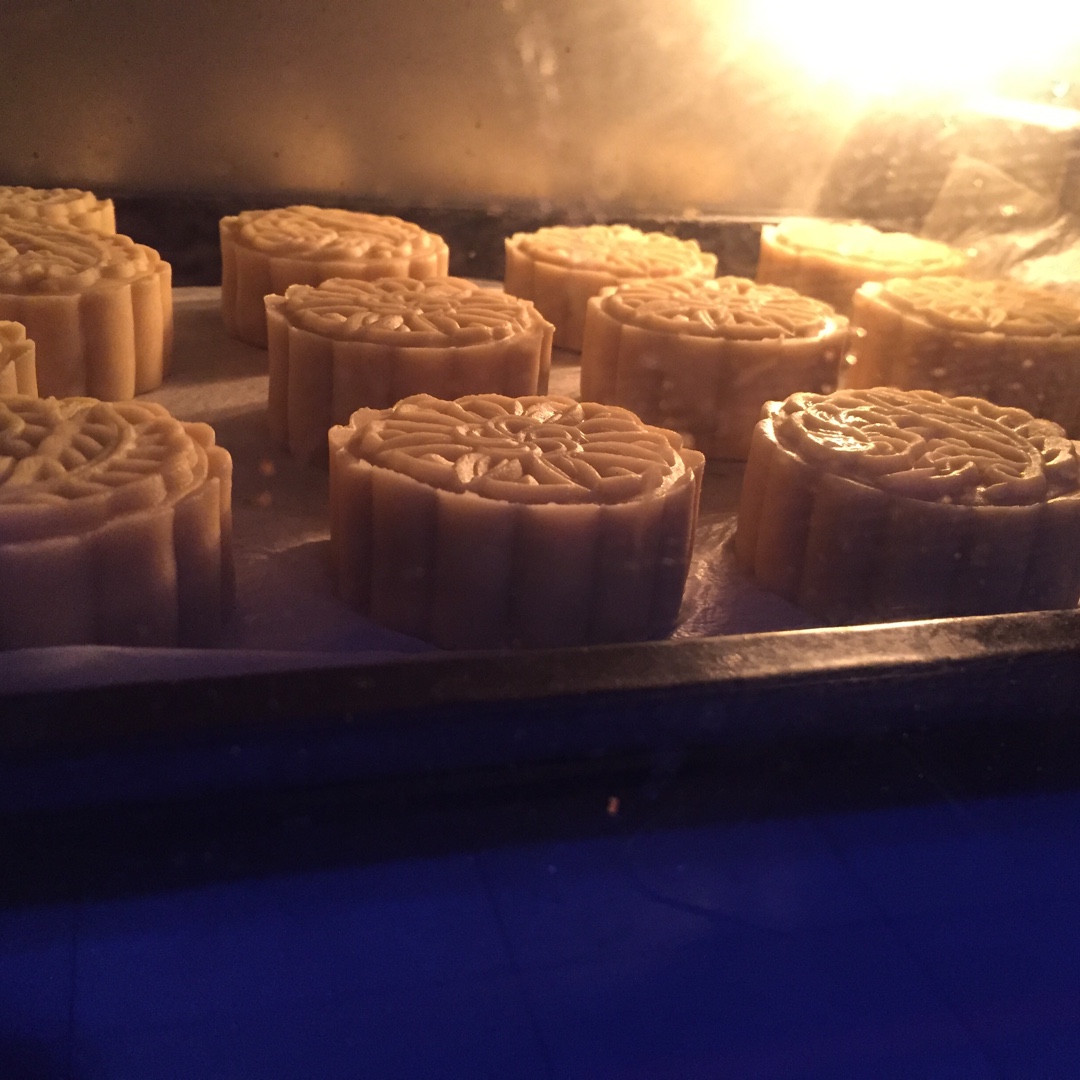 第九步:放入烤箱180度烤8分钟。颜色出来后,取出后刷上薄薄一层色拉油,继续烤2分钟。美味的广式月饼就做好了!! #广式月饼#