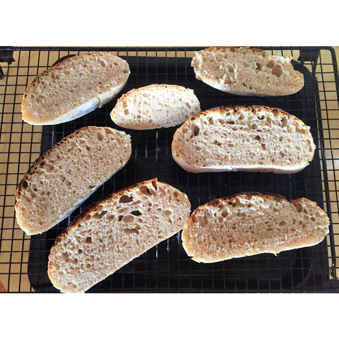 酵母宝宝第一次做面包 算是不错吧 量减半做的 经历了好几天 必须记录一下 光滑面朝下就没有割包 结果一点都没裂 成了个黑顶 好难切😅图三是早上酵头刚和在一起的样子 图四是下午 图五是浮水测试 图六是一发完整形后准备放入冰箱二发的面团 考虑是不是该买个藤篮?放在碗里倒扣还是不好出来会粘壁 最后 酸面包后味无穷 我觉得挺有意思 但是估计家里只有我会吃了🌝 #午餐•2016年10月6日#
