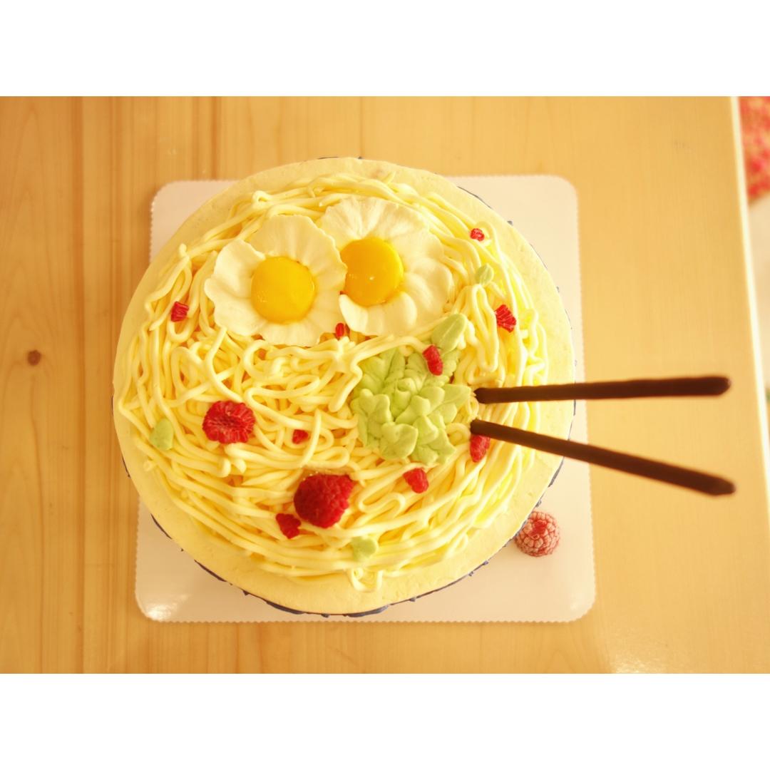 长寿面俯视图,两个荷包蛋哈哈