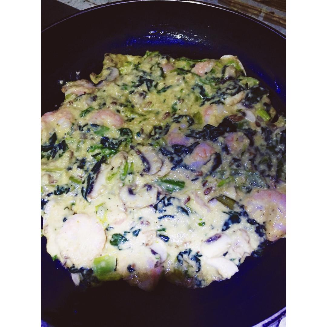 小野猫艾米丽 做过 早餐•2017年1月2日 今日丫丫妈咪早餐分享,原本要吃烘蛋的,结果顺手做了个蔬菜煎饼,里面放了好多麦麸,减肥好帮手,这样就可以少放面粉了,因为放了麦麸,中间不容易熟,所以煎的颜色不得人心,沾点味极鲜,饼调味的时候就不要放太多的盐了哦,想多吃点儿蔬菜,于是又拌了个蔬菜沙拉,经过一晚很干燥,蔬菜沙拉绝对是很好的伴侣👍🏼😻✌🏼️👏🏼💪🏼 #早餐•2017年1月2日# 2017-01-02