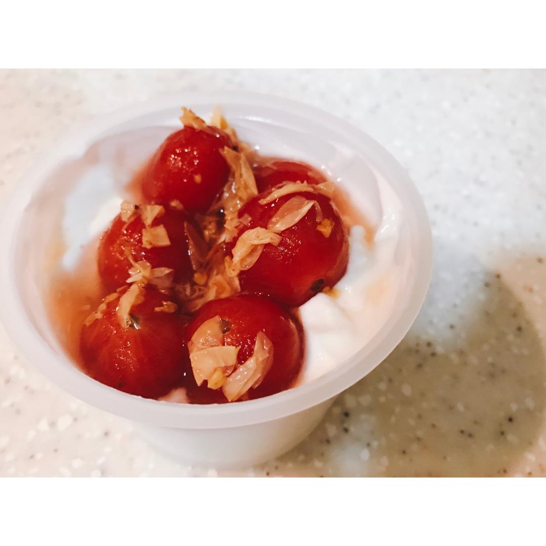 糖桂花渍樱桃番茄,就这原味酸奶,夜宵棒棒哒~