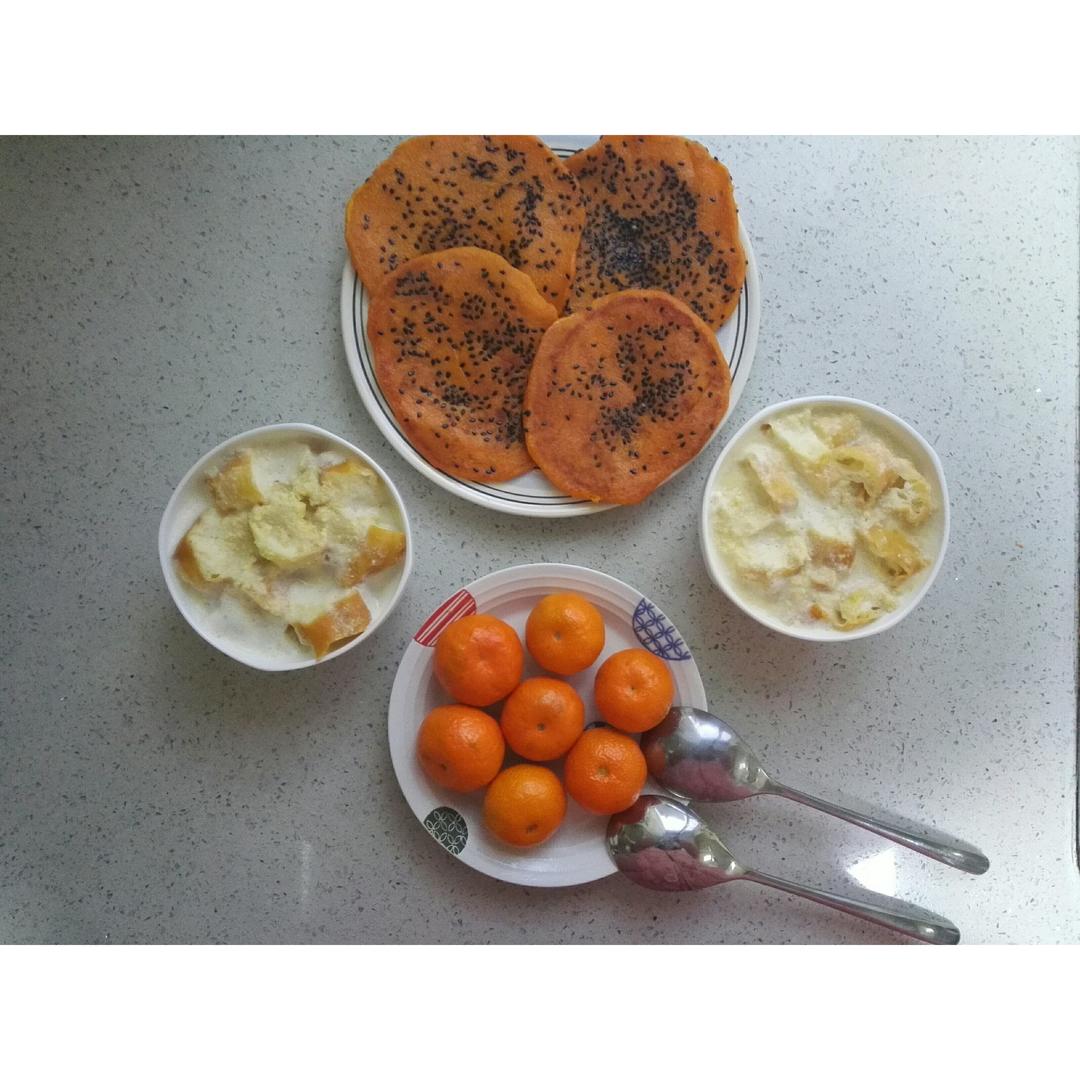 水各姑娘 做过 早餐•2017年1月11日 #早餐•2017年1月11日##吴小厨的小厨房#失败的早餐😔本来想做南瓜饼🎃,奈何🎃一蒸熟就都是水,我倒了些,放了糯米粉,还是粘手,导致放了好多糯米粉,整体就不怎么甜了😔饼做太大,直接快成大饼了,我也是醉了😔本来想油条泡豆浆,谁曾想,怎么那么难吃,肯定打开方式错了,总体来说,这早餐是有史以来做的最失败的啊😔 2017-01-11