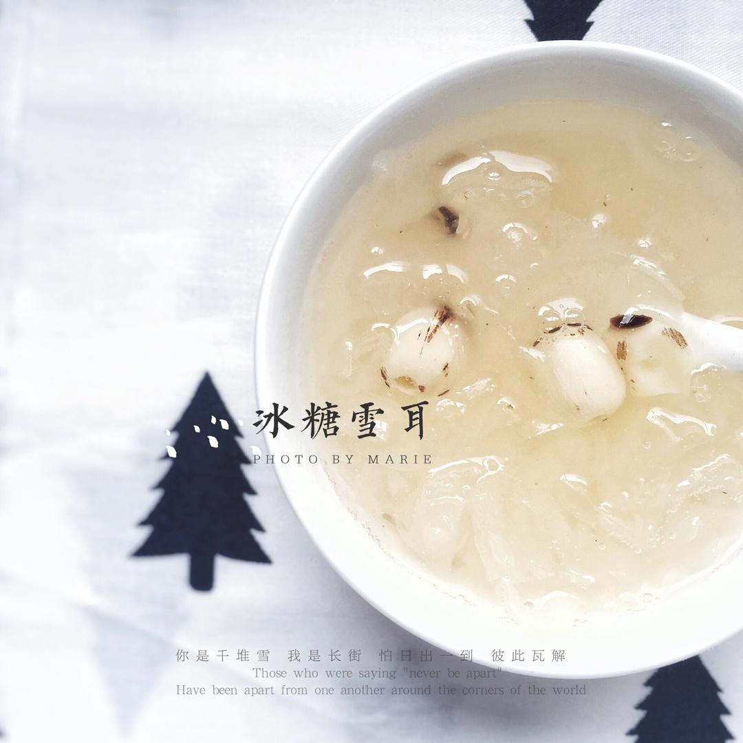 林一二bunny 做过 10张图教你如何煎制一碗冰糖银耳 昨天在下厨房微博刷到这个菜谱,赶紧把买来的银耳泡了,我是用电饭锅做的,不用看着比较省心。泡发的银耳用剪子剪碎,加三倍的水在电饭煲里滚开。拔了电源焖一夜,第二天早上开锅,胶质全部出来了。红枣切细条,加莲子、冰糖,适量水,继续电饭煲煮半个小时。请享用粘粘滑滑的银耳羹吧~ 2017-02-22