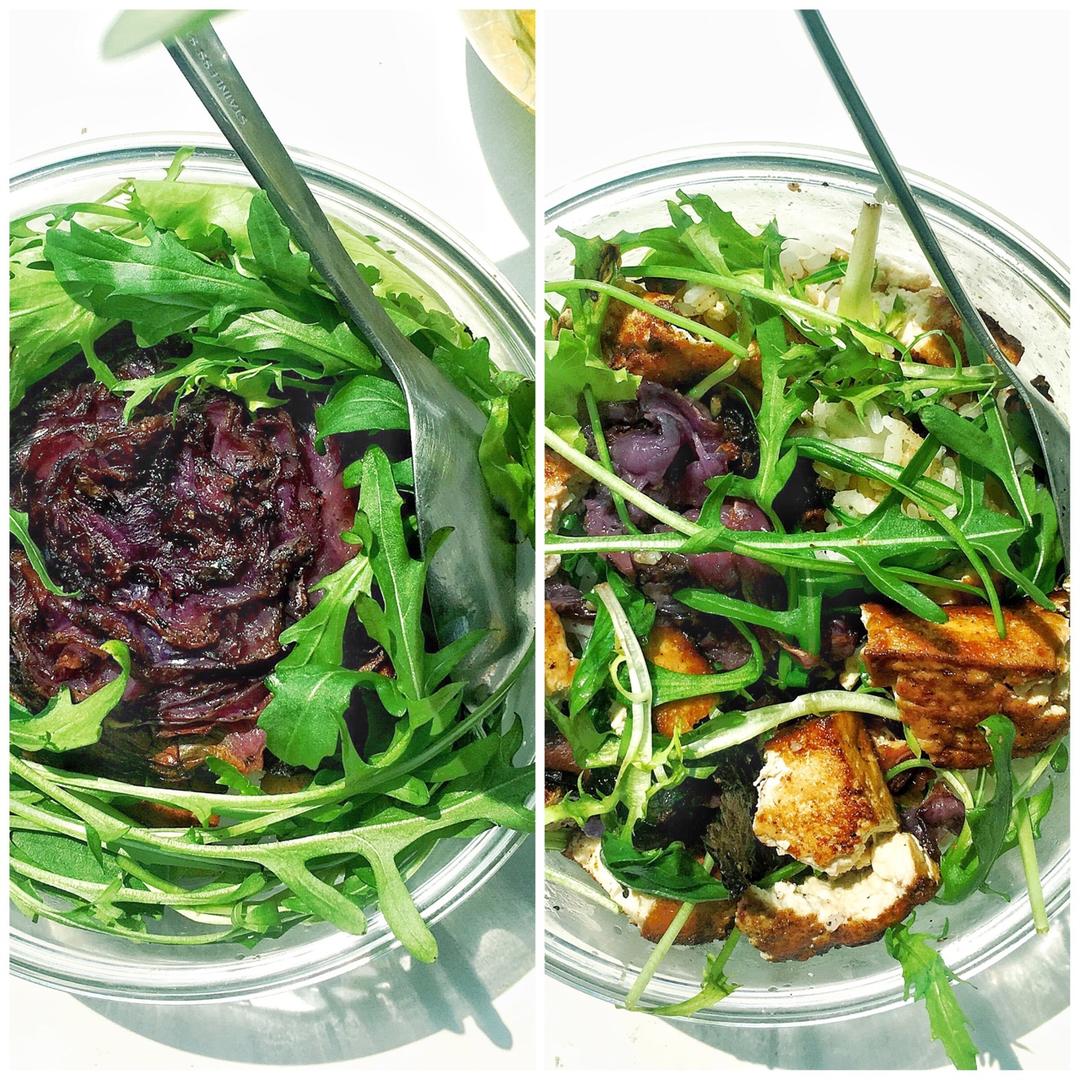 兔橙 做过 【健康三餐】香烤紫甘蓝 好啦,super bowl go on!今天的搭配是杂粮米饭+煎北豆腐(撒了点孜然调味儿,超好吃)+香烤紫甘蓝(第一次这么吃,增加了香甜味儿,蛮妙的)+芝麻菜。大口大口都吃完啦!大家中午好! #午餐•2017年3月8日##春季餐桌##superbowl# 2017-03-08