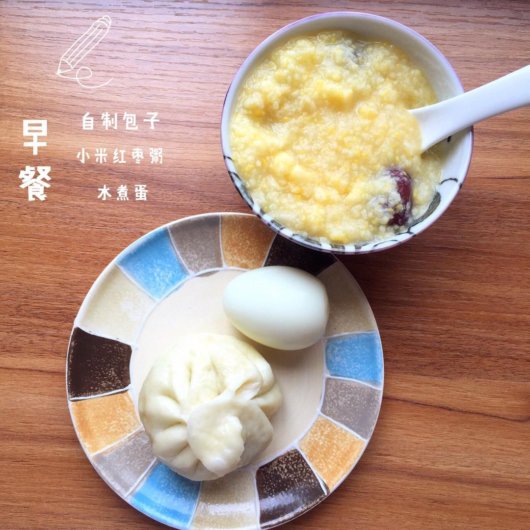 早餐:小米红枣粥 自制包子 水煮蛋