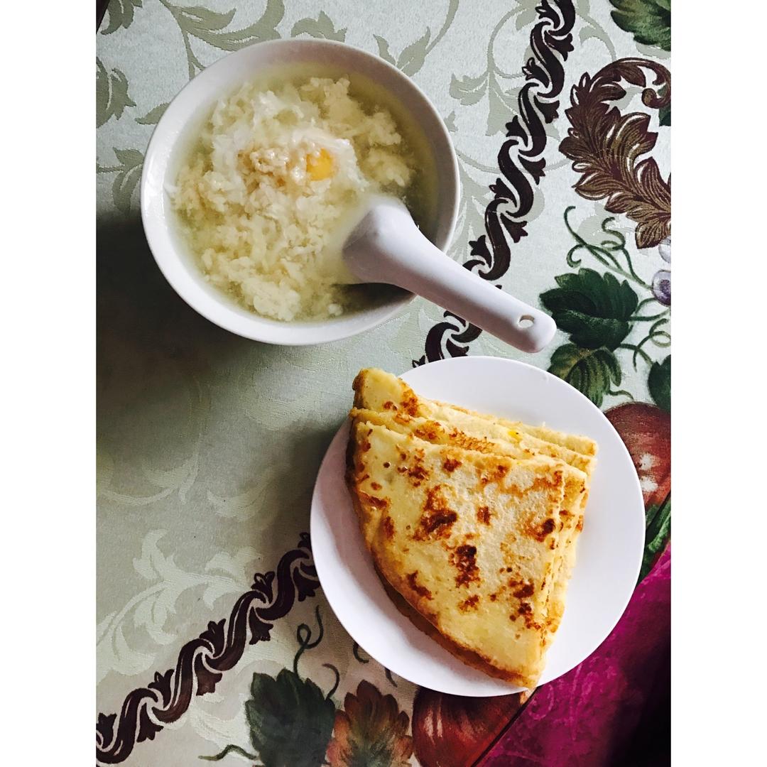 CrystalJan郑六六 做过 早餐•2017年4月30日 早餐:酒酿水扑蛋、两个大香蕉松饼、两片椰丝面包、两块戚风蛋糕加餐:一杯酸奶、半个苹果、一小包腰果、一小包山核桃 #早餐•2017年4月30日##六六の月子餐# 2017-04-30