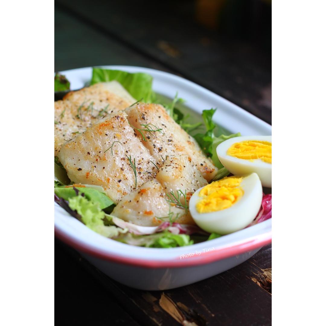 午餐,煎鱼柳,最近家里买的鸡蛋敲开都是双黄的,实在太赞了!