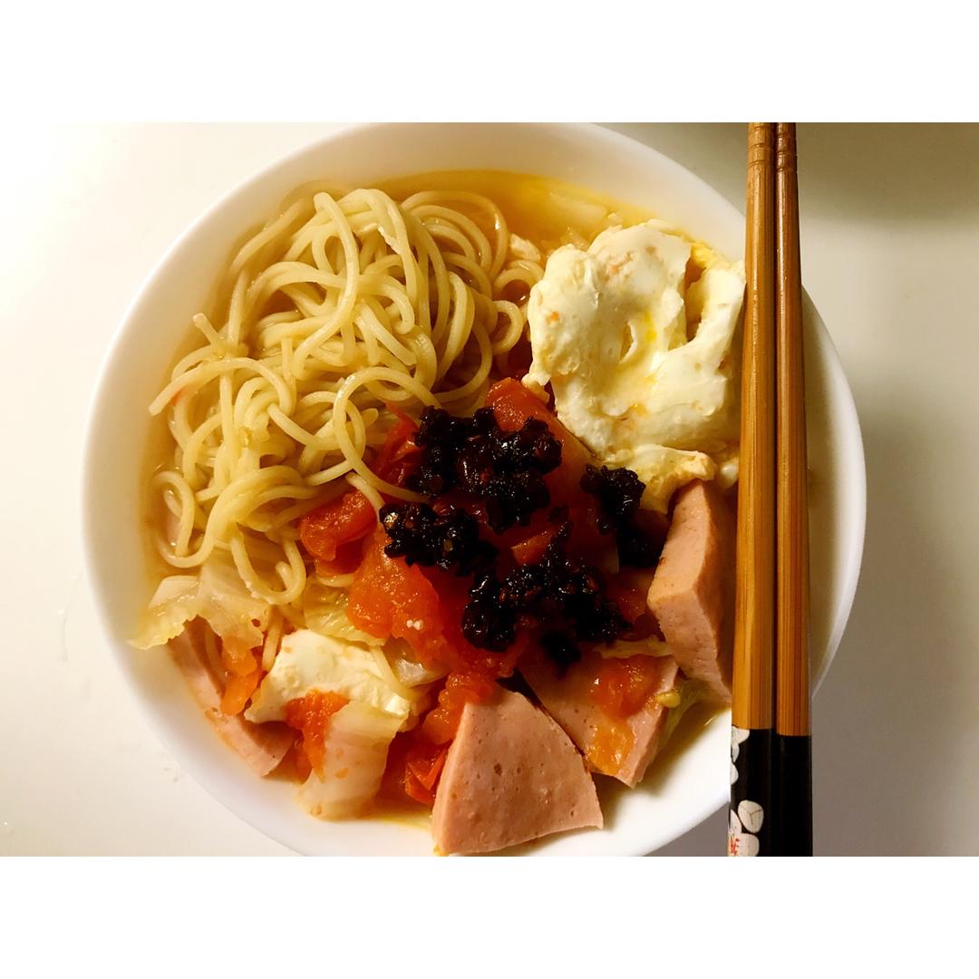 Jasmine2017 做过 午餐•2017年6月28日 一锅用老干妈都拯救不了的面条…😞心血来潮放了一包方便面调料…在欧洲买到的便宜方便面都是越南某某面或者泰国某某面,国产泡面好贵…放进去以后闻着就崩溃啊…浪费我一锅好好的西红柿汤… #午餐•2017年6月28日##接力自制幸福感##论留学生出国是去学习还是锻炼厨艺# 2017-06-28