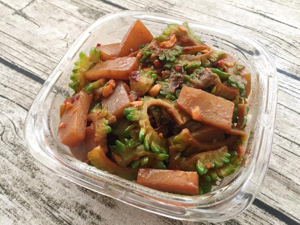 蒜蓉魔芋炒苦瓜(辣醬):先生便當。昨天產檢倆人上稱,先生半個月在無節食狀態下已瘦了5磅;本人目前孕8個月,較之7月體重只重了3.3磅,妊娠紋也木有長。