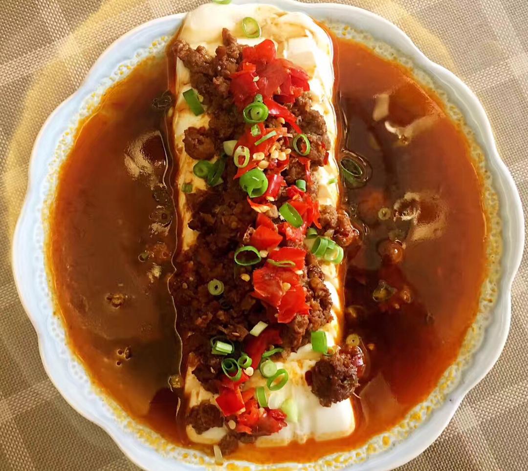 香辣肉末蒸豆腐